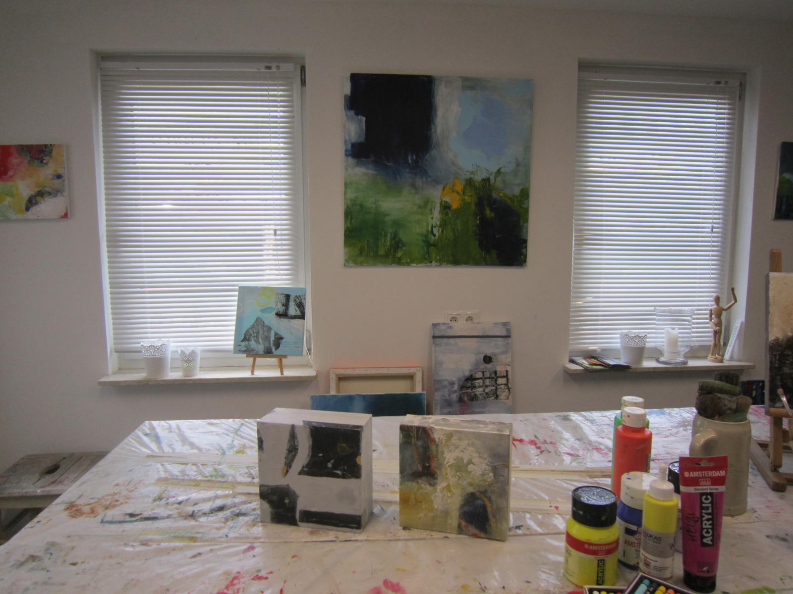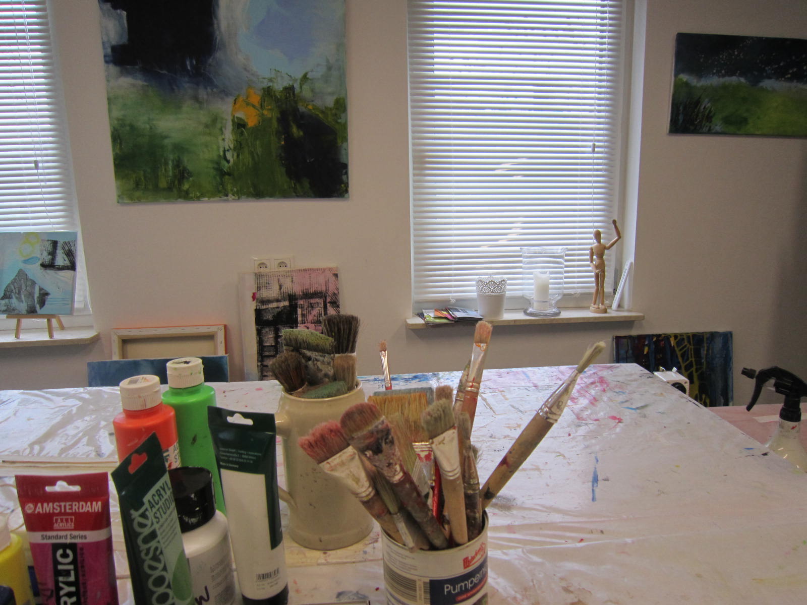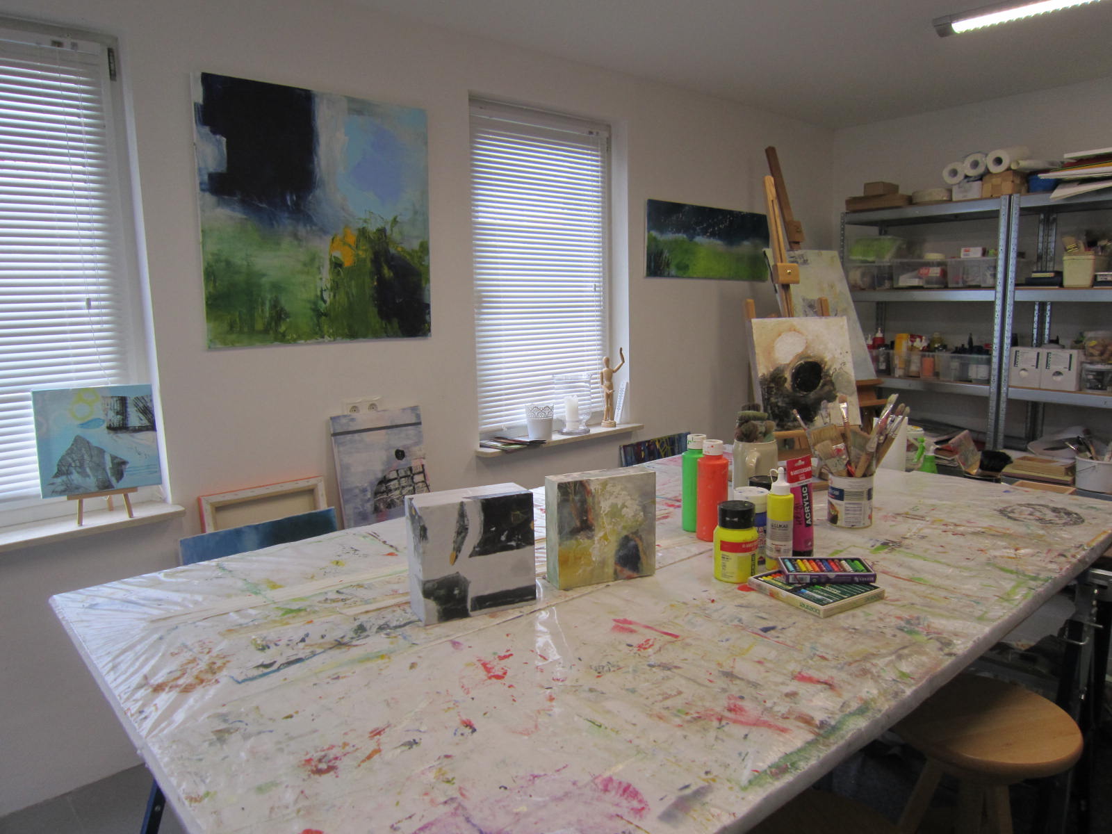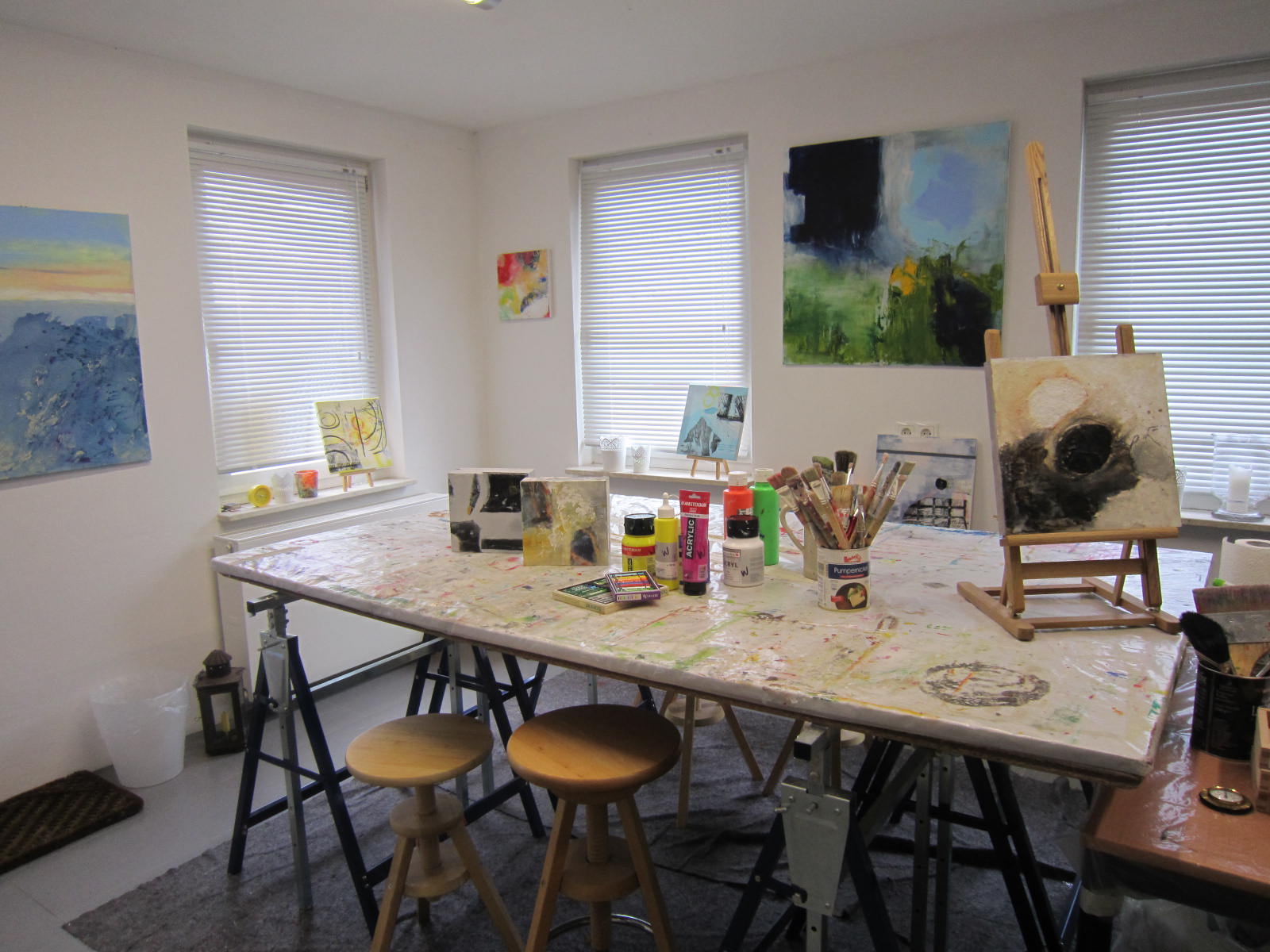Seit Ende 2013 öffne ich einmal im Monat die Werkstatttür um 18 Uhr (geschlossen wird etwa um 21 Uhr). Und dann können Sie sich betätigen. Spielen Sie mit Farben, mit Materialien, wie Sand, Kreide, Seidenpapier oder was auch immer Sie möchten. Entspannen Sie nach einer Woche der Arbeit und Verpflichtungen.